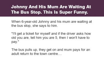 Johnny And His Mum Are Waiting At The Bus Stop.