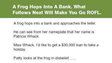 A Frog Hops Into A Bank.
