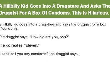 674 Shares AnimalsJokes A Hillbilly Kid Goes Into A Drugstore And Asks The Druggist For A Box Of Condoms.