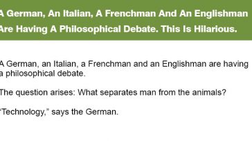 820 Shares AnimalsJokes A German, An Italian, A Frenchman And An Englishman Are Having A Philosophical Debate.