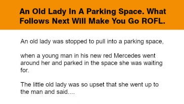 An Old Lady In A Parking Space.