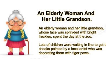 An Elderly Woman And Her Little Grandson.